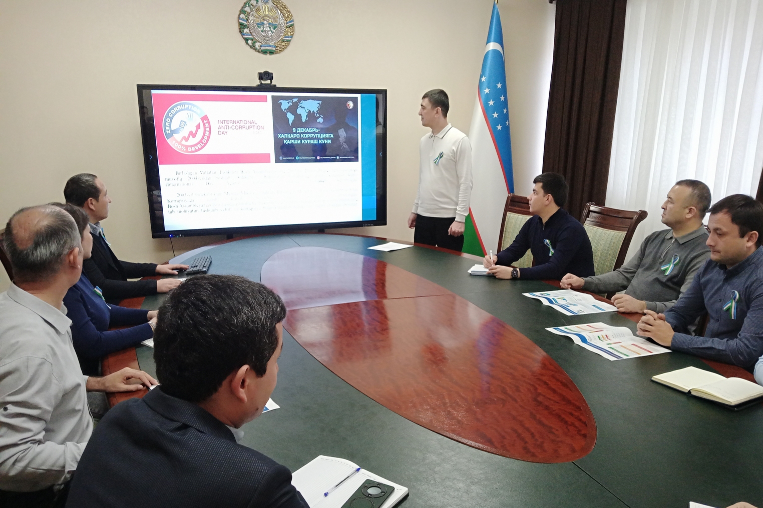 Tadbir yakunida korrupsiyaga qarshi kurashish mavzusiga bag‘ishlangan videoroliklar xodimlarga namoyish etildi.